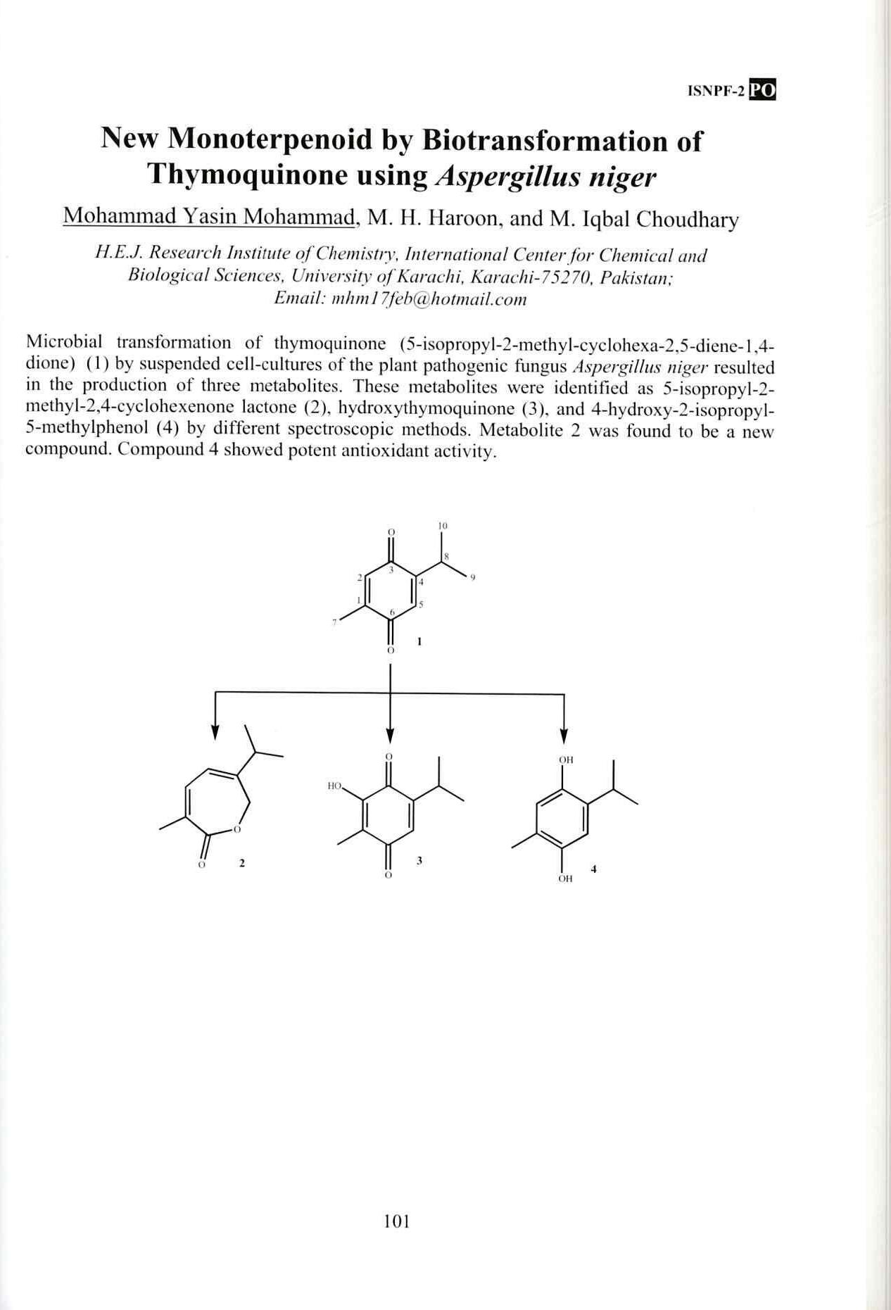 New monoterpenoid by biotransformation of thymoquinone using Aspergillus niger