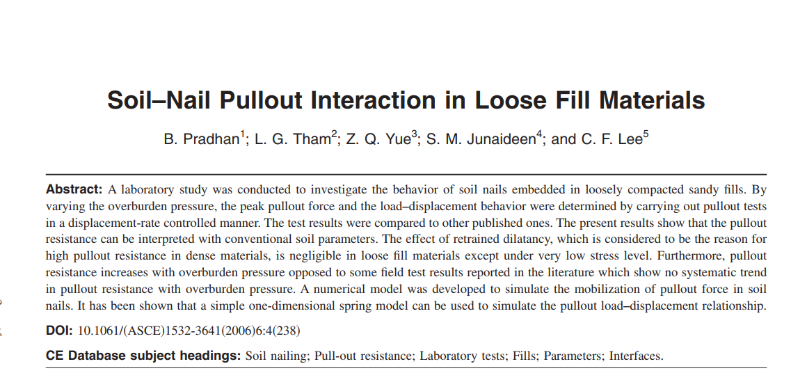 Soil–nail pullout interaction in loose fill materials